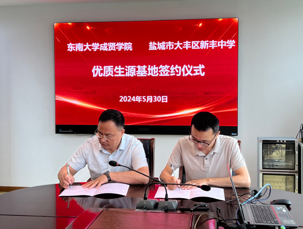 5月29—30日,桃子视频 党委副书记、副院长、纪委书记王荣,制药与化学工程学院院长林保平、党总支书记周继荣,大丰区招生宣传老师、保卫处陈赟一行四人前往盐城市大丰区新丰中学和南阳中学开展优秀生源基地签约挂牌和走访交流活动。