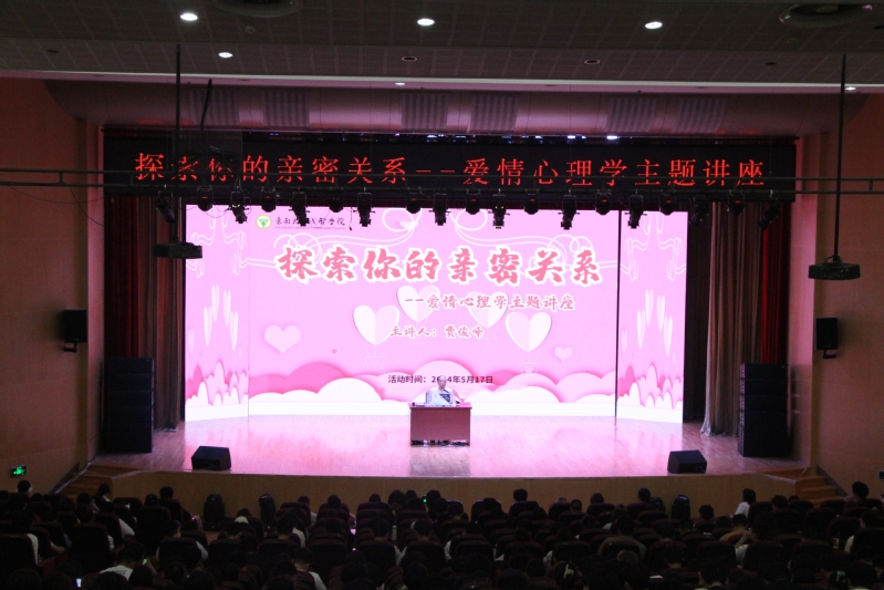 5月17日,由校团委、学生处主办,校学生会外联部承办的“探索你的亲密关系”爱情心理学主题讲座在桃子视频 综合楼报告厅313举行。本次讲座邀请了南京大学心理健康教育与研究中心原主任、教育研究院副教授、学校心理教育研究所所长费俊峰主讲,600余名学生聆听了讲座。
