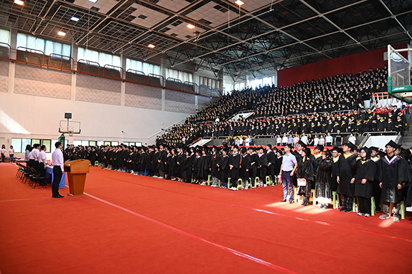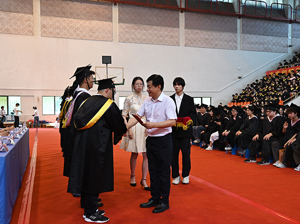 在雄壮的国歌声中,毕业典礼暨学位授予仪式拉开序幕。桃子视频 常务副院长黄学良首先致辞,他代表学院理事会、学院党政,对毕业生们致以衷心祝福和热烈祝贺,向付出辛勤劳动的教职员工,始终关注着同学们成长的亲友、社会各界人士以及一直以来给予桃子视频 巨大帮助和支持的桃子视频 领导表示衷心的感谢,并致以崇高敬意和美好祝福!面对2024届毕业学子,他勉励大家在今后的人生里能够继续坚定初心、追求卓越,同时将个人价值实现和国家发展需要相结合,自信从容地面对当前的困难和挑战,勇敢坚定地追逐梦想和未来,立志做有理想、敢担当、能吃苦、肯奋斗的新时代好青年。