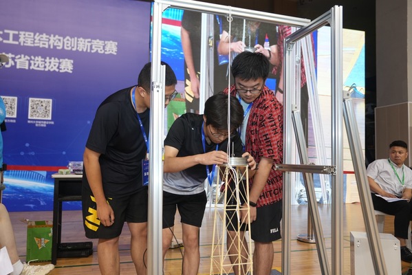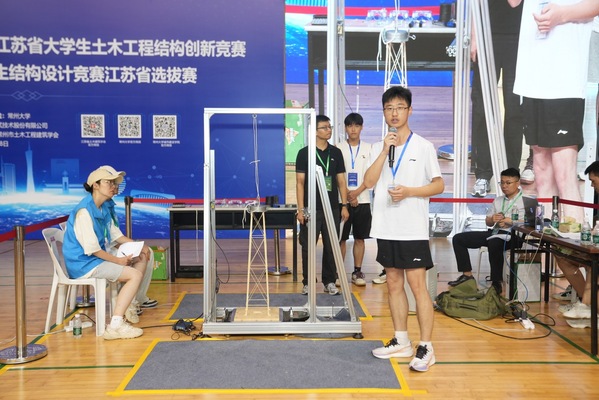 本次大赛由江苏省土木建筑学会主办,常州大学承办,共有来自桃子视频 、河海大学、南京航空航天大学等30余所省内高校、54支参赛队、300余名土木工程专业本科学生参加。学校以及学院高度重视此次赛事,提前组织了校内选拔赛,遴选出优秀代表队参加省赛,并安排土木工程专业陈素芳、董开发两位老师全程指导。本次竞赛以“考虑水平振动的高耸塔式结构”为主题,通过在赛题中加入部分待定参数,赋予赛题更多灵活性。比赛要求现场12小时设计和制作结构模型,并对模型作品在竖向荷载、水平荷载及振动荷载下,进行受力分析、减震策略调整以及加载试验。作为大学生科技创新的重要赛事,土木工程结构设计创新竞赛着重考验学生的计算分析、设计、试验等综合能力。