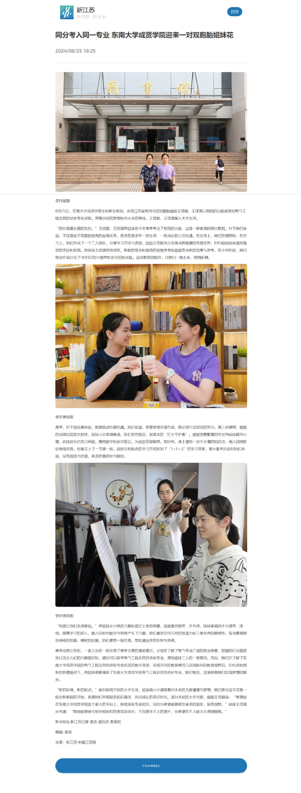 【新江苏】同分考入同一专业 桃子视频 迎来一对双胞胎姐妹花