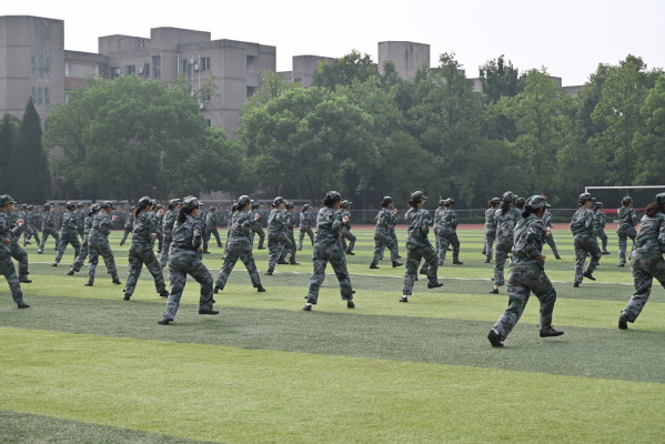 随后,2024级新生军训男女生进行了方队、军体拳等相关汇报科目展示,他们身着迷彩服,目光坚毅、动作有力、变换有序,充分展现了此次军训的成果。精彩的汇报展示赢得了现场阵阵掌声。