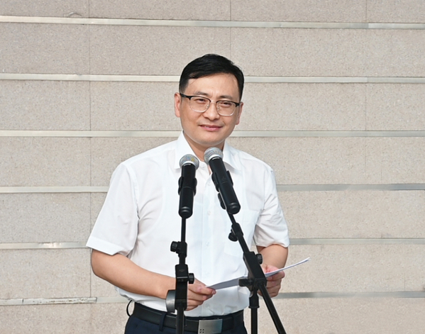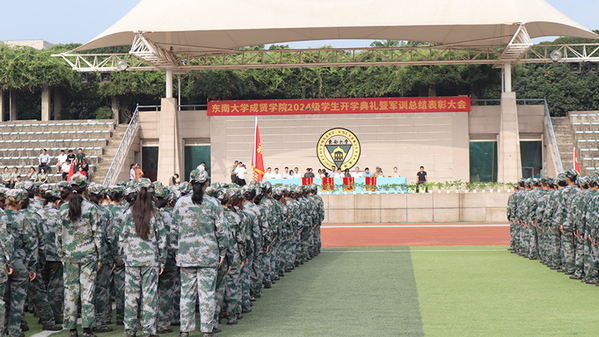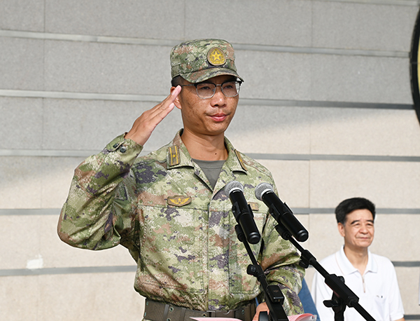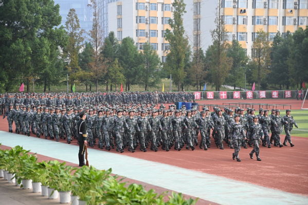 2024级学生军训团团长唐复邦在讲话中高度认可本次新生军训展演,并向顺利完成本次军训的同学们表示祝贺,向学院各级领导与教职员工表示感谢。他希望同学们把军训成果尽快转化为努力学习、刻苦钻研的强大精神动力。