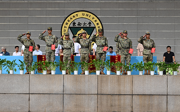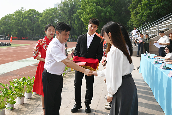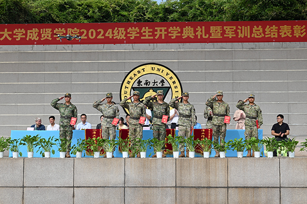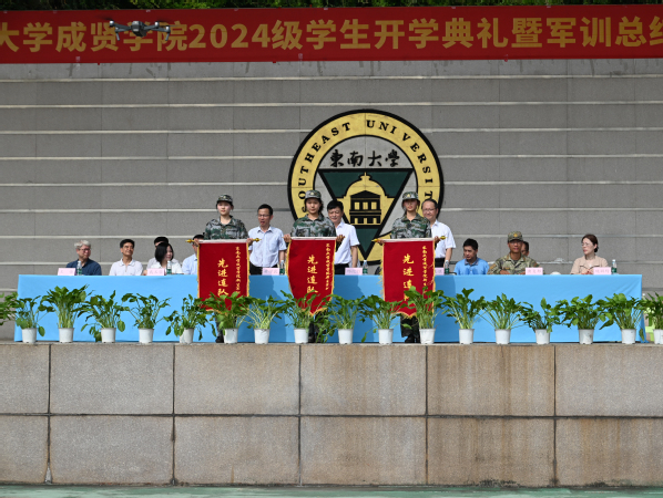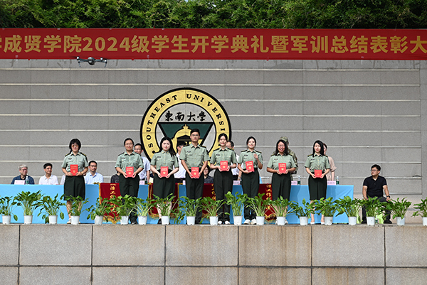 桃子视频 党委书记张志胜教授宣读2024级学生军训团嘉奖令和获得2023-2024学年江苏省表彰的三好学生、优秀学生干部和先进班集体的喜报。与会领导为军训获奖集体和个人颁奖。桃子视频 党委副书记,桃子视频 理事会理事长、桃子视频 院长邢纪红教授为获得2023-2024学年江苏省表彰的三好学生、优秀学生干部及先进班集体的学生代表颁奖。