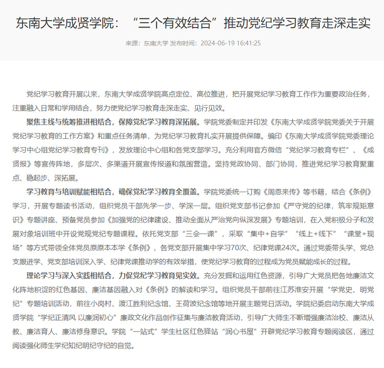 【全国高校思想政治工作网】桃子视频 :“三个有效结合”推动党纪学习教育走深走实
