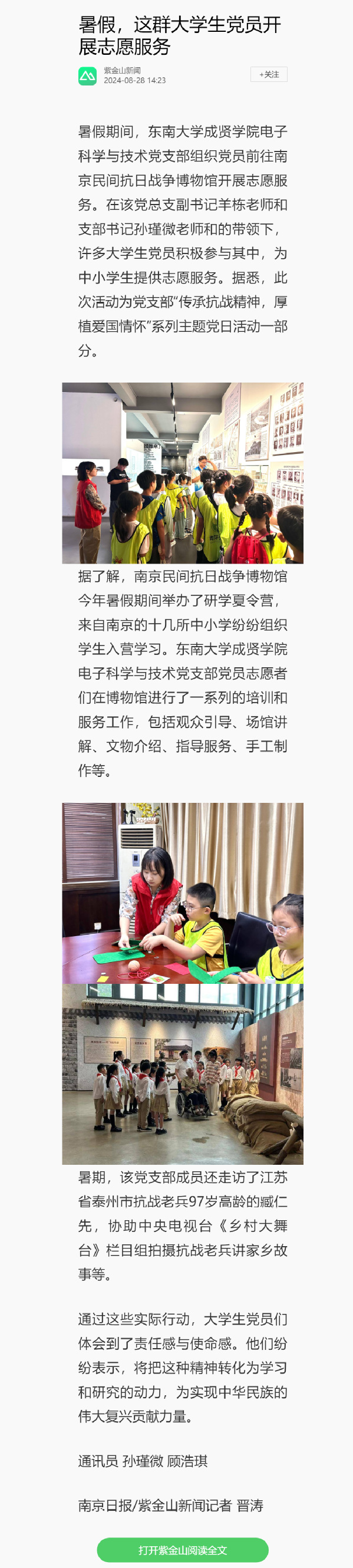 【南京日报/紫金山新闻】暑假,这群大学生党员开展志愿服务