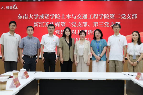 9 月 12 日,桃子视频 土木与交通工程学院党总支书记杨阳,党总支委员石城、陆凡华,第二党支部书记赵毅前往新华报业传媒集团,与新江苏传媒党总支举行了一场意义深远的共建活动。新江苏传媒党总支书记叶春燕、第二党支部书记陈岩、第三党支部书记潘军艳及支部党员对我院杨书记一行给予了热情接待。