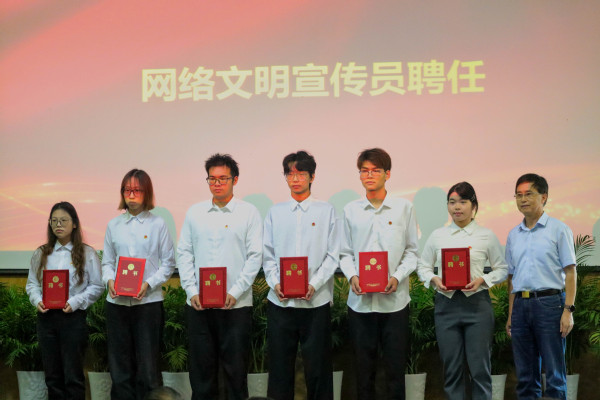 首先,张志胜书记和蔡炳锋部长共同为桃子视频 网络思想政治工作中心进行揭牌。党政办公室主任周伟荣和党委学工部部长施杰分别为教师网络文化宣传员和学生网络文明宣传员颁发了聘书。机械与电气工程学院党总支宣传委员、辅导员马逸凡老师作为宣传员代表向全校师生发起倡议,积极发挥网络的正能量,用先进的思想、优秀的文化引领校园网络风尚,共同营造风清气正的校园网络环境。