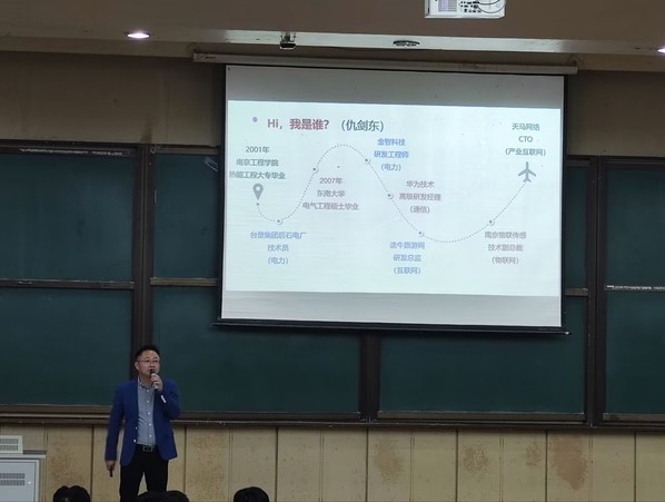 10月10日下午,江苏天马网络科技集团CTO仇剑东以“路在何方?我的未来不是梦!”开展主题讲座。仇剑东历任金智科技项目经理、华为技术研发经理、途牛旅游网研发总监、南京物联传感研发副总裁、南京我在智能联合创始人,从事硬件开发、软件开发、系统架构、产品策划、团队管理等多项工作。他分享了自身的职业成长经历,介绍了行业发展趋势和人才需求,对同学们的专业学习和职业规划提出了中肯建议。在交流环节,同学们就自身求职过程中遇到的问题和困惑向仇剑东老师求助,仇老师一一解答并分享经验。