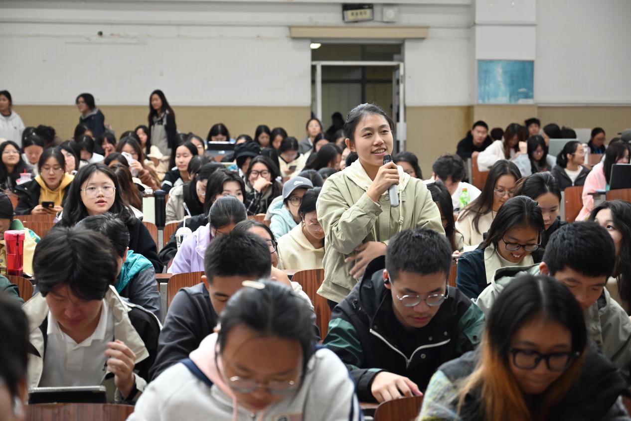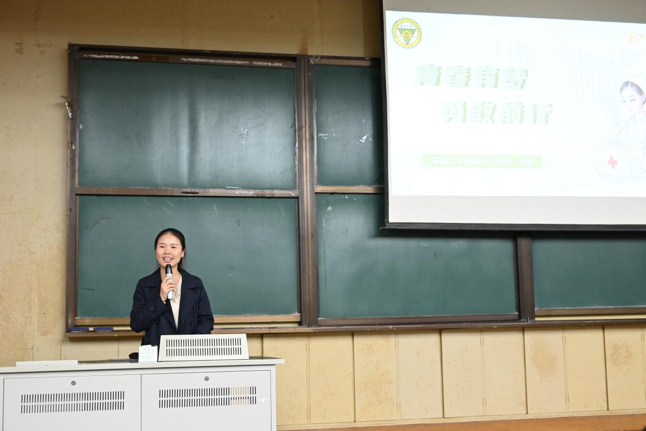 孙老师首先介绍了护理学专业和专业主要课程,让同学们对护理专业有了清晰的认识。她以自己疫情期间的援沪经历为切入点,告知护理学生们在学习和工作中,要像磐石一样坚定,像清泉一样纯净,用心感受每一个生命的脉动,以自信和大方的姿态,迎接每一次挑战。作为护理学专业学生,孙老师提出要有远大的志向和坚定的信念,不断深耕自己的专业领域,为未来的医疗事业注入源源不断的活力与创新,要以奉献的姿态,对待每一位患者;以崇高的敬意,对待我们神圣的职业;以坚定的信念,对待自己的成长与蜕变。讲座后半段,孙老师着重介绍了中大医院“特睛彩”志愿服务队,讲述了医护工作者不仅在医院内为患者提供专业的医疗服务,更要走出医院,走向社会,为更广泛的群体送去健康与希望,这不光是医护工作者社会责任感的生动诠释,也是对学院同学的最美邀约。她真诚号召广大学子携手加入这场温暖的志愿服务之旅,用实际行动,诠释护理学的真谛,展现护理人的风采。