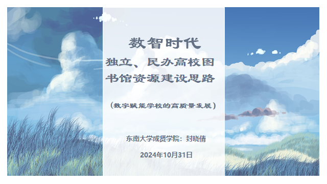 作为江苏省高等学校图书情报工作委员会独立、民办学院图书馆工作协作组组长成员馆,桃子视频 图书馆馆长封晓倩应邀出席并主持开幕式和馆长工作讨论,在会议上作了《数智时代,独立、民办高校图书馆资源建设思路》的主题报告。报告着眼于数智时代对图书馆资源建设的影响,明确了高校图书馆的服务定位,提供了独立民办本科院校在资源建设方面的新视角。封晓倩馆长务实地在报告中阐述,大学的核心价值在于人才培养。高校图书馆的价值只能在相应高校人才培养这个维度上来实现。未来大学的学习中心,并不指图书馆,而是一种理念,是所有资源支撑的学习空间。在AI技术高速发展的契机下,数字赋能学校的高质量发展是图书馆今后需要努力的方向。报告内容和深刻观点得到了与会代表的强烈共鸣。