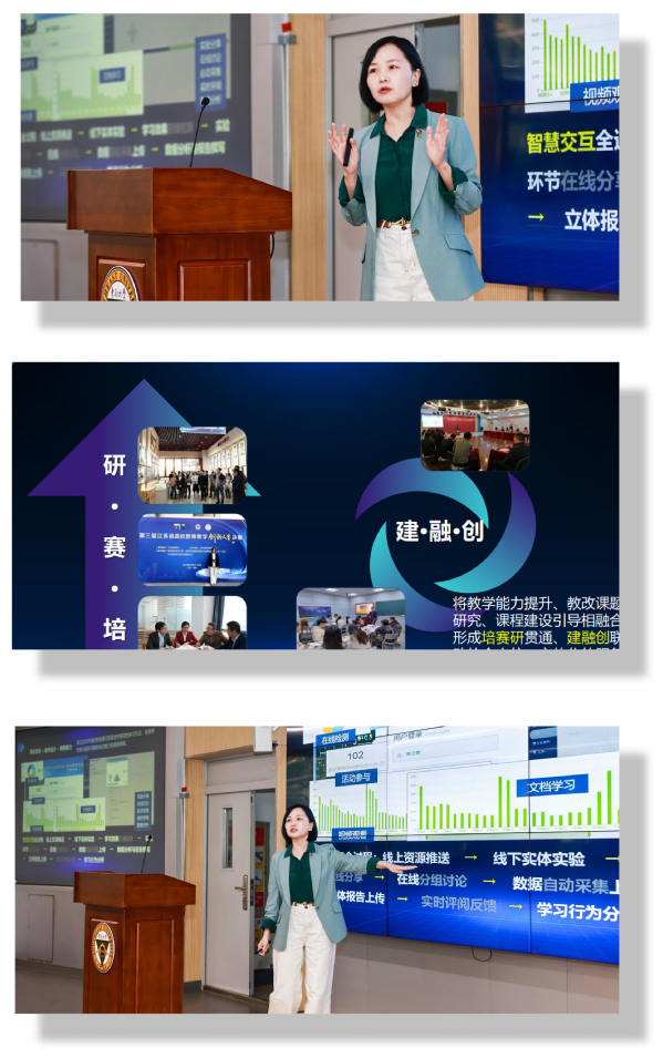 11月2日下午,戴玉蓉教授作了题为“数智化转型时代的教师发展工作思考与实践”的报告。党的二十大提出高等教育需以创新为核心,要通过教育、科技、人才一体化支撑高水平科技自立自强。因此教师作为关键力量,需适应新领域、新行业、新业态的需求,不断更新知识结构、改变教学模式并提升数字素养。同时,教师发展工作也需要适应新时代的需求和挑战。她在报告中介绍了自己在教学过程中,通过建设课程资源+合理教学设计+数智内涵助力,形成的动态开放的智慧教学模式及所取得的教学效果,并由点及面,介绍了桃子视频 作为应用型高校,始终聚焦教师能力提升,整合优化校内外资源,通过构建“培•赛•研”贯通、“建•融•创”联动的教师培养和发展机制,将教学能力提升、教改课题研究、课程建设引导相融合,立体化促进教师更新教育理念,全方位提升教师教育教学能力,聚力打造具有特色的高素质应用型教师队伍,并最终落实到高水平应用型人才培养中。最后她还就新时代的教师发展,提出了研究创新的教发生态、持续提升的学术实力、厚积薄发的表现张力等思考。报告引起了与会代表的热烈反响与互动,来自西南交通大学、山东理工大学、成都大学、哈工大威海校区的多位老师与戴院长进行了现场交流。此次报告不仅为桃子视频 教师提供了宝贵的教学发展实证支持,也为高校探索数智化转型之路提供了可借鉴的范例。