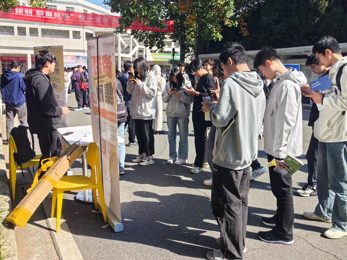 目前,桃子视频 第十二届营造书香校园读书节系列活动正在有序推进中,11月5日,在食堂主干道上开展了一场别开生面的图书馆资源集市活动。活动当天,第一、二食堂主干道上人来人往、热闹非凡,同学们满怀期待地穿梭于电子资源数据库之间。图书馆购置的知网、万方、畅想之星、超星移动图书馆、CIDP、材料库、中科、设计师之家、药融云共9家资源数据库来到现场,与全校师生面对面交流,向读者展示了涵盖学位论文、理工学科、设计、医药等多个领域的数据资源。这些资源不仅内容丰富、种类繁多,而且具有高度的权威性和实用性,为桃子视频 师生学习和研究提供了强有力的支持。