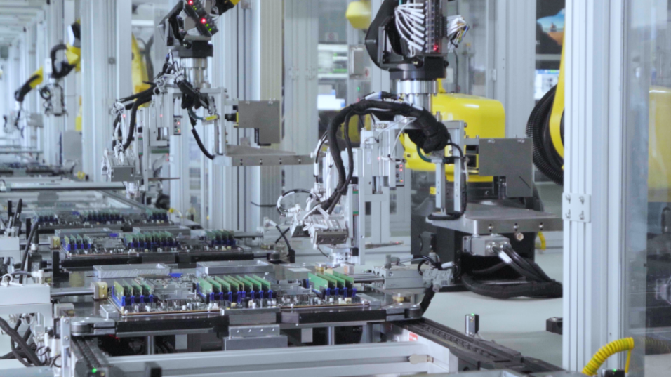 柔性生产线上机械臂在进行产品装配 (基地供图)
