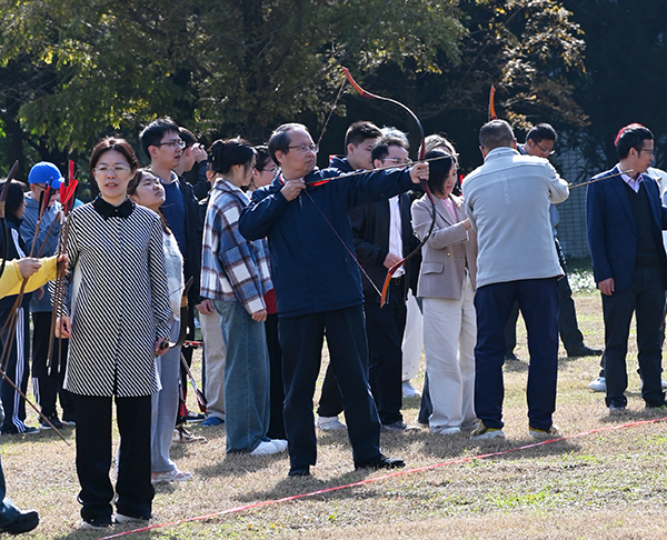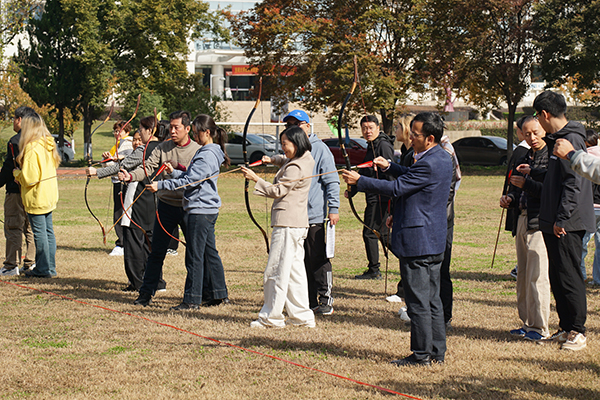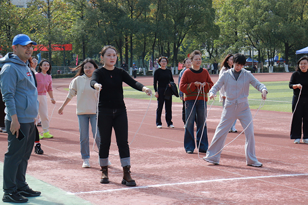 本届趣味运动会共设5个活动项目:飞镖接力、跳绳跑、二人三足绑腿跑、多人网球和射箭比赛,其中飞镖接力和二人三足绑腿跑项目的比赛异常激烈,参赛队员个个精神抖擞,队友们在旁观赛加油鼓励。教职工们用笑容传递喜悦,用行动诠释热爱,欢快的氛围弥漫着整个赛场。