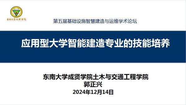 本次论坛依托大数据、云计算、区块链和人工智能等新兴技术的使用和发展,聚焦加快5G网络、人工智能、大数据中心等新型基础设施建设进度,围绕进一步统筹好新型和传统基础设施的协同融合发展,构建现代化基础设施体系,重大基础设施智慧建造与运维最新研究进展等议题展开交流研论,共同探讨我国在相关领域的卡脖子问题及其解决思路。论坛上,郭正兴院长结合“智能建造本—研—职多层次融合人才培养”议题,作了题为《应用型大学智能建造专业的技能培养》专题报告。郭院长围绕建筑工业化、数字化、绿色化融合发展,应用型大学智能建造专业的知识结构和技能结构分析,桃子视频 智能建造专业模块化实操技能构建与实施,智能建造综合实训课程体系建设等内容,详细报告了桃子视频 智能建造专业在专业、课程建设方面所做的尝试与探索,为国内同类高校构建创新人才培养模式,培养具有实操技能的高水平应用型本科人才提供实践经验。