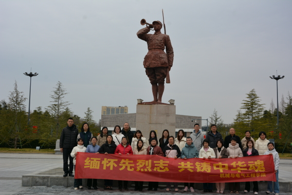 为缅怀革命先辈丰功伟绩,弘扬红色革命精神,深入学习习近平新时代中国特色社会主义思想,3月14日,机械与电气工程学院党总支组织全体教工党员前往盐城新四军纪念馆开展以“缅怀先烈志 共铸中华魂”为主题的党日活动,进一步坚定理想信念,激发教育报国的使命担当。