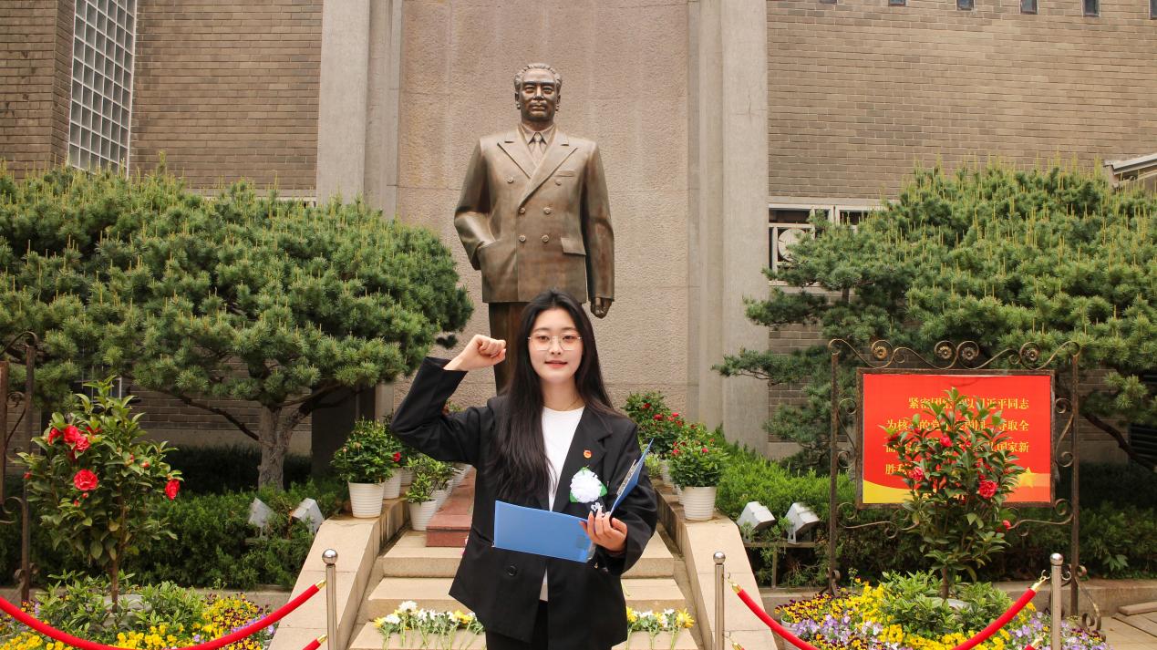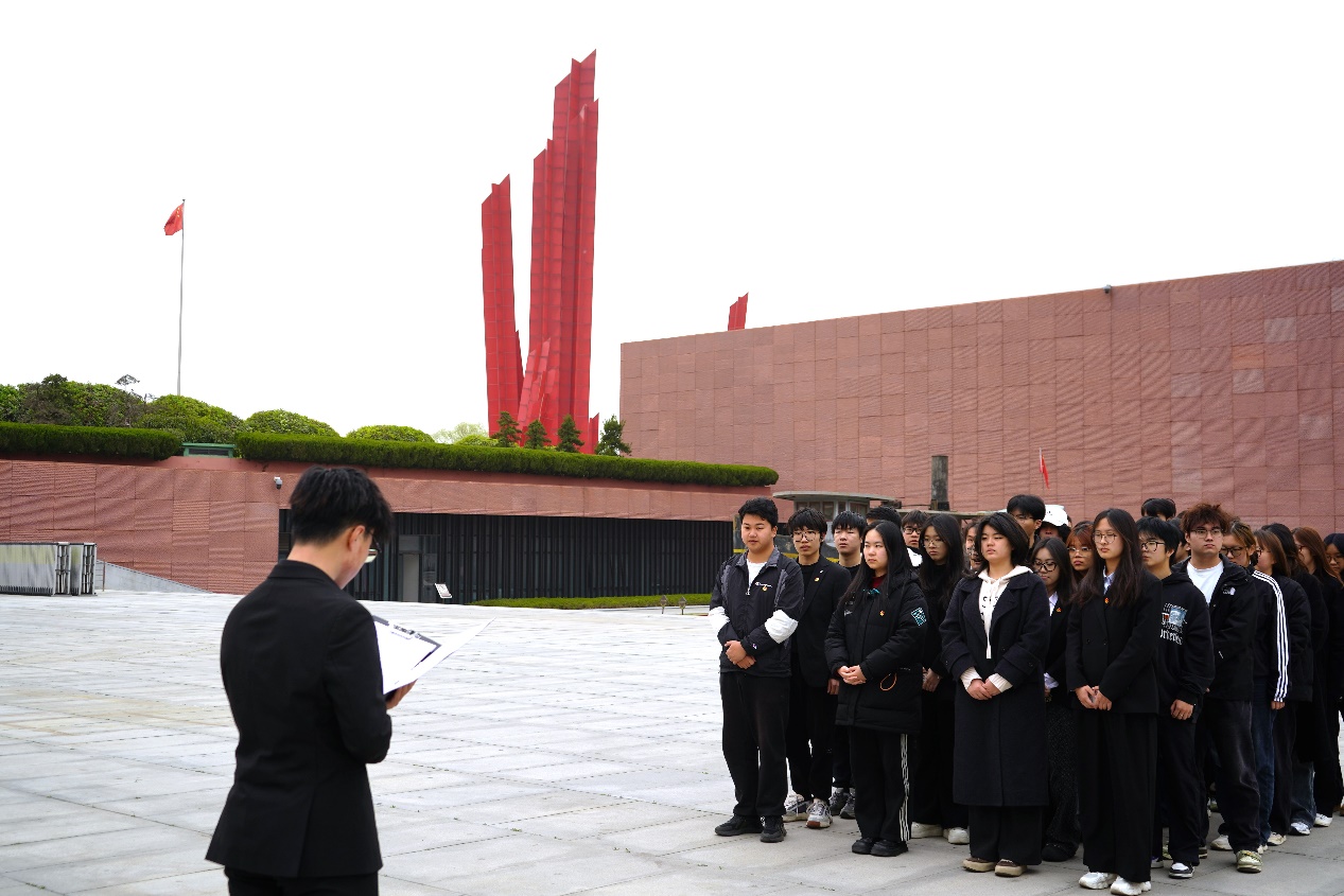 庄严的凭吊仪式现场,同学们手捧菊花,整齐列队。在巍峨耸立的纪念碑下,同学们鞠躬行礼,全场默哀,敬献花圈,整理绶带,瞻仰献花,缅怀丰功伟绩,祭奠烈士英灵。先烈开道为后人,后人继业慰忠魂。同学们高举右拳,重温入团誓词,在铿锵有力的誓词中,表达了对党忠诚、为共产主义奋斗终身的坚定信念。凭吊仪式结束后,同学们依次参观展馆里珍贵的革命文物和写实的历史照片,认真倾听讲解员讲述革命先烈抛洒热血为国捐躯的英雄事迹。馆内陈列着烈士们的遗物,破旧的军衣上弹痕依稀,褪色的信件满是对家国的牵挂。简陋的武装、斑驳的勋章,无声地诉说着往昔的战火和战士们浓厚的爱国情怀。踱步其间,仿佛穿越时空,目睹革命烈士为国家独立和人民幸福舍生忘死、英勇牺牲,让全体同学接受了一次深刻的思想洗礼和党性教育,更坚定了同学们传承精神、不负时代的信念。