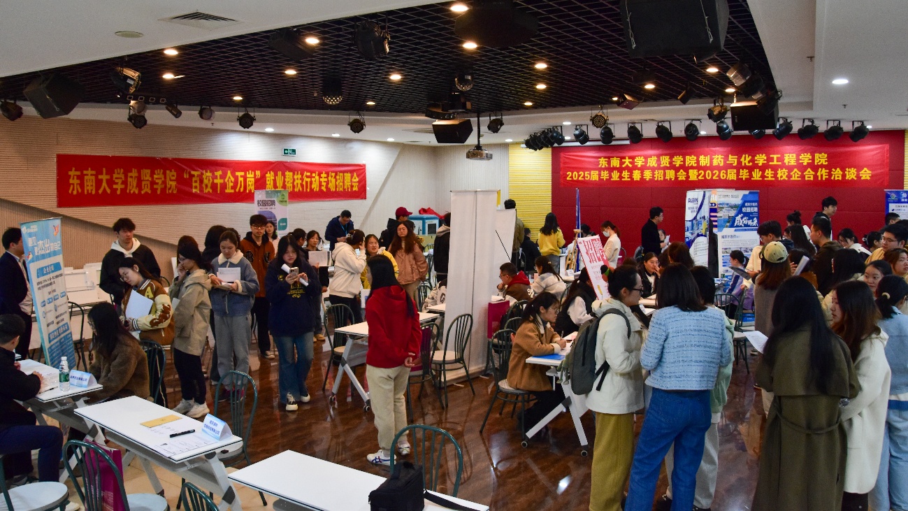 为抢抓春招关键期,全力攻坚促就业,4月1日,制药与化学工程学院联合校团委、学生处就业办在综合楼307室隆重举办了2025届毕业生春季招聘会暨2026届毕业生校企合作洽谈会。本次招聘会邀请了包括江苏豪森药业集团、先声药业、南京药石科技、南京世和基因生物技术等30家知名企业参会,其中由杰出校友创办或有校友担任企业核心骨干的11家,吸引了众多2025届、2026届学生前来参加。