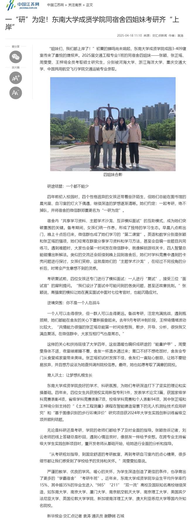 【中国江苏网】一“研”为定!桃子视频 同宿舍四姐妹考研齐“上岸”