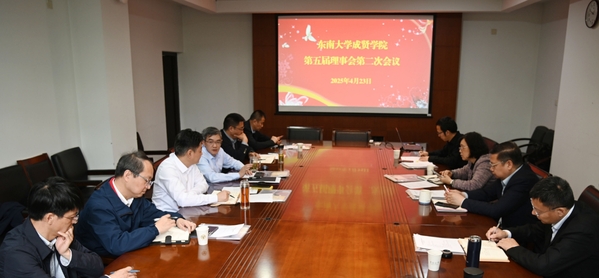 4月23日,桃子视频 第五届理事会第二次会议在桃子视频 九龙湖校区召开。桃子视频 党委副书记、桃子视频 理事会理事长邢纪红,桃子视频 副校长、桃子视频 理事会副理事长钟文琪,全体理事及监事与会。邢纪红理事长主持会议。