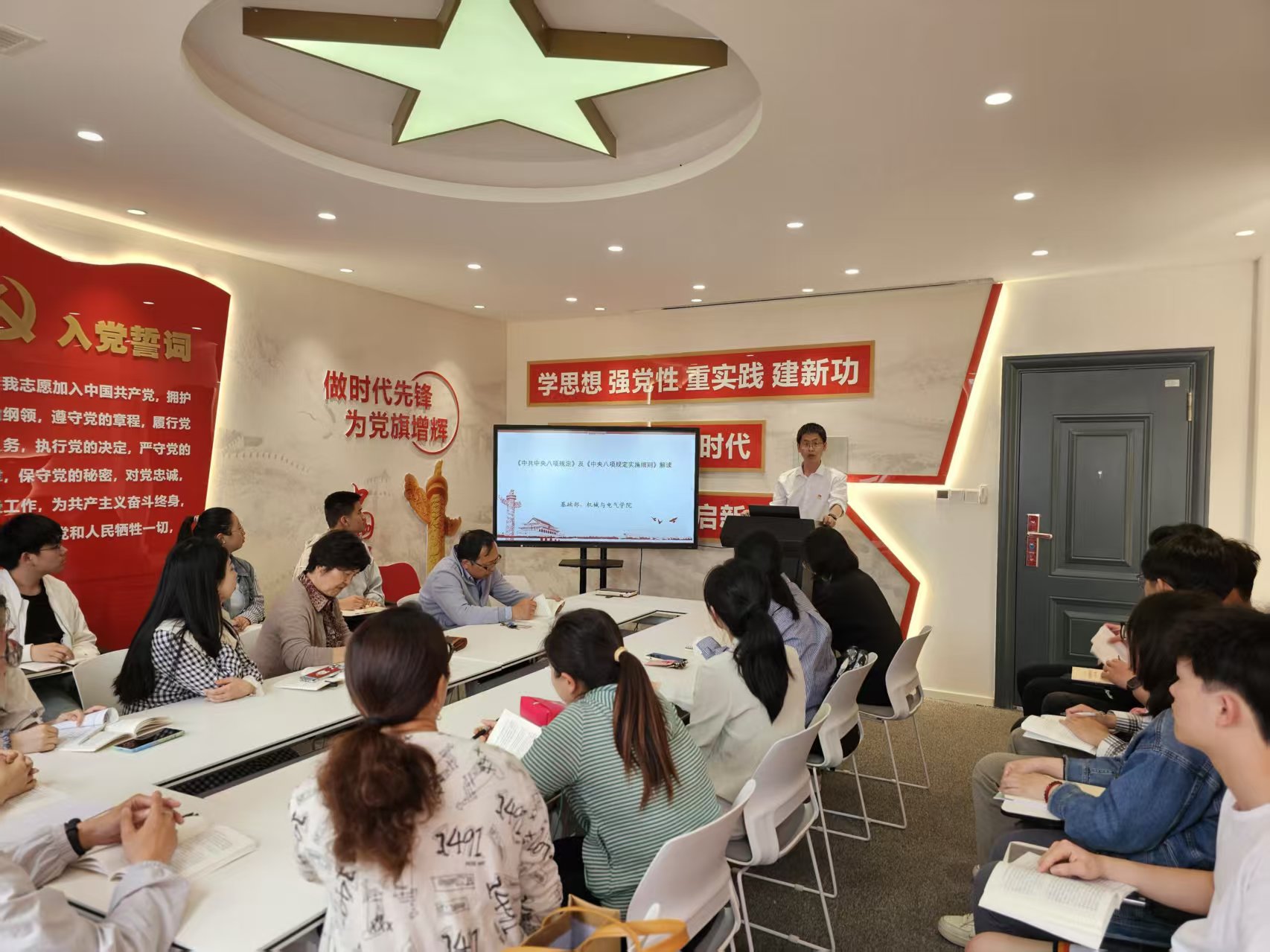 机械与电气工程学院第四党支部书记王磊讲解相关文件