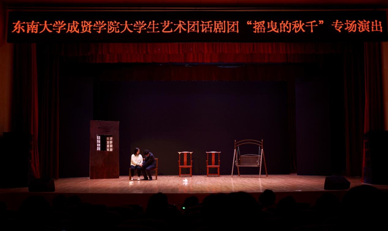 5月12日晚,由校团委主办,大学生艺术指导中心承办的《摇曳的秋千》话剧团专场演出在综合楼313报告厅拉开帷幕,全校650余名师生观看了演出。