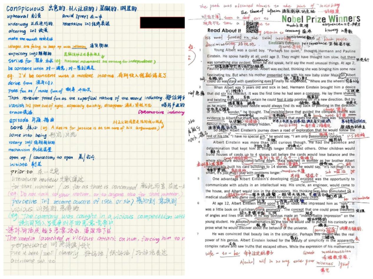 活动自启动以来,得到了同学们的积极响应。通过为期一周的线下宣传,共收集到参赛作品500余份。经过初步筛选,高数与英语笔记分别有40份和20份优秀作品脱颖而出。终审环节中评审团队从内容的准确性、逻辑的条理性、重点的突出性以及版面的美观度等多个维度对参赛笔记进行了细致评审。经过严格筛选,最终高数组张诗凡、焦雨融两位同学荣获一等奖,汤梓煊、吴可欣、张若欣三位同学荣获二等奖,周星月、钱姝怜、沈婉如、蒋倩雯、何菲五位同学荣获三等奖;英语组赖书涵、段佳佳两位同学荣获一等奖,王智轩、周启悦、袁博三位同学荣获二等奖,何宥嘉、朱雨轩、居佳惠、李心语、古颉五位同学荣获三等奖。获奖同学的笔记不仅记录详实、条理分明,更体现了对知识点的深入理解和创新思考。