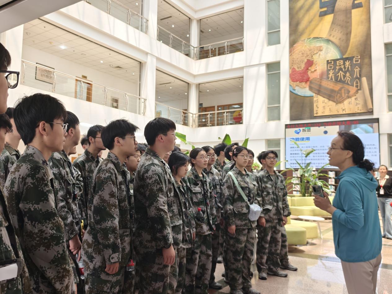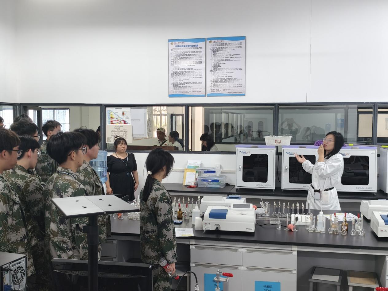 欢迎仪式后,画川学子分三组开启校园探索之旅。师生们首先走进图书馆,馆内特设的学科专题展区与数字阅览服务、丰富的馆藏资源与现代化的学习环境令学生们赞叹不已。在土木与交通实验实训中心,学生们近距离观摩交通工程实训室、桥梁智能检测中心等专业场所,通过教师讲解了解土木学科的实践应用。在制药与化学工程学院实验室内,精密的分析仪器与模拟化工生产线的演示,激发了学生对化工制药领域的浓厚兴趣。行程最后一站,师生们驻足华罗庚馆前的青铜鼎器旁,聆听桃子视频 的发展沿革和桃子视频 校史与文化讲解。青铜鼎器承载的“负民族振兴之重任,育国家建设之栋梁”彰显教育使命,为国防班学子们上了一堂生动的理想信念课。