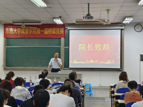 郭正兴院长在比赛致辞中提到:桥梁承载着交通的便利,见证着科技的进步,也体现着工程技术与艺术美学的完美融合。举办这次桥梁概念设计竞赛,不仅是学校深化实践教学改革、提升创新型人才培养质量的重要举措,更是为在座的各位同学搭建了一个激发创新思维、锤炼专业技能、展示青春才华的绝佳舞台。希望所有参赛队伍都能赛出水平、赛出风格、赛出创意,展现桃子视频 学子的卓越风采!在比赛过程中,各参赛团队围绕桥梁设计的创新性、功能性、美观性与可行性展开激烈角逐,充分展现了成贤学子的专业素养和蓬勃朝气。竞赛现场气氛热烈,参赛团队通过精心准备的二维、三维多媒体演示,向评委组系统阐述桥梁设计理念与方案亮点。评委们从结构合理性、技术创新性、经济环保性及展示效果等多维度进行严格评审和深入点评,为同学们提供了宝贵的专业指导。最终,经现场答辩评审,共有28个团队获奖,其中一等奖5个,二等奖9个,三等奖14个。