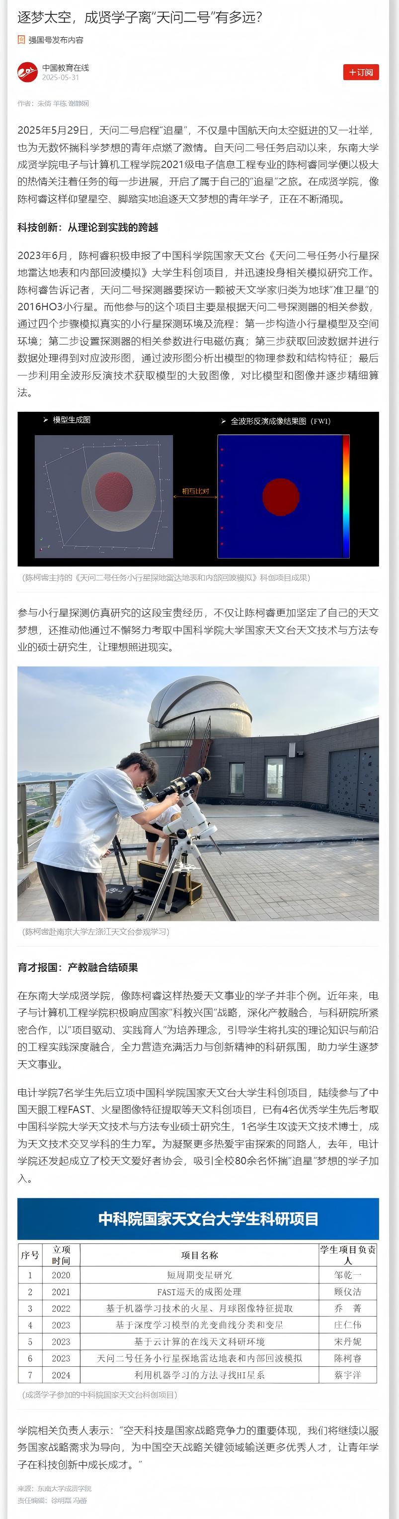 【学习强国】逐梦太空,成贤学子离“天问二号”有多远?