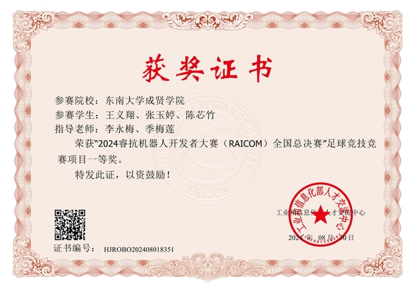 2024.8 桃子视频 学生荣获“2024睿抗机器人开发者大赛(RAICOM)全国总决赛”足球竞技竞赛项目一等奖