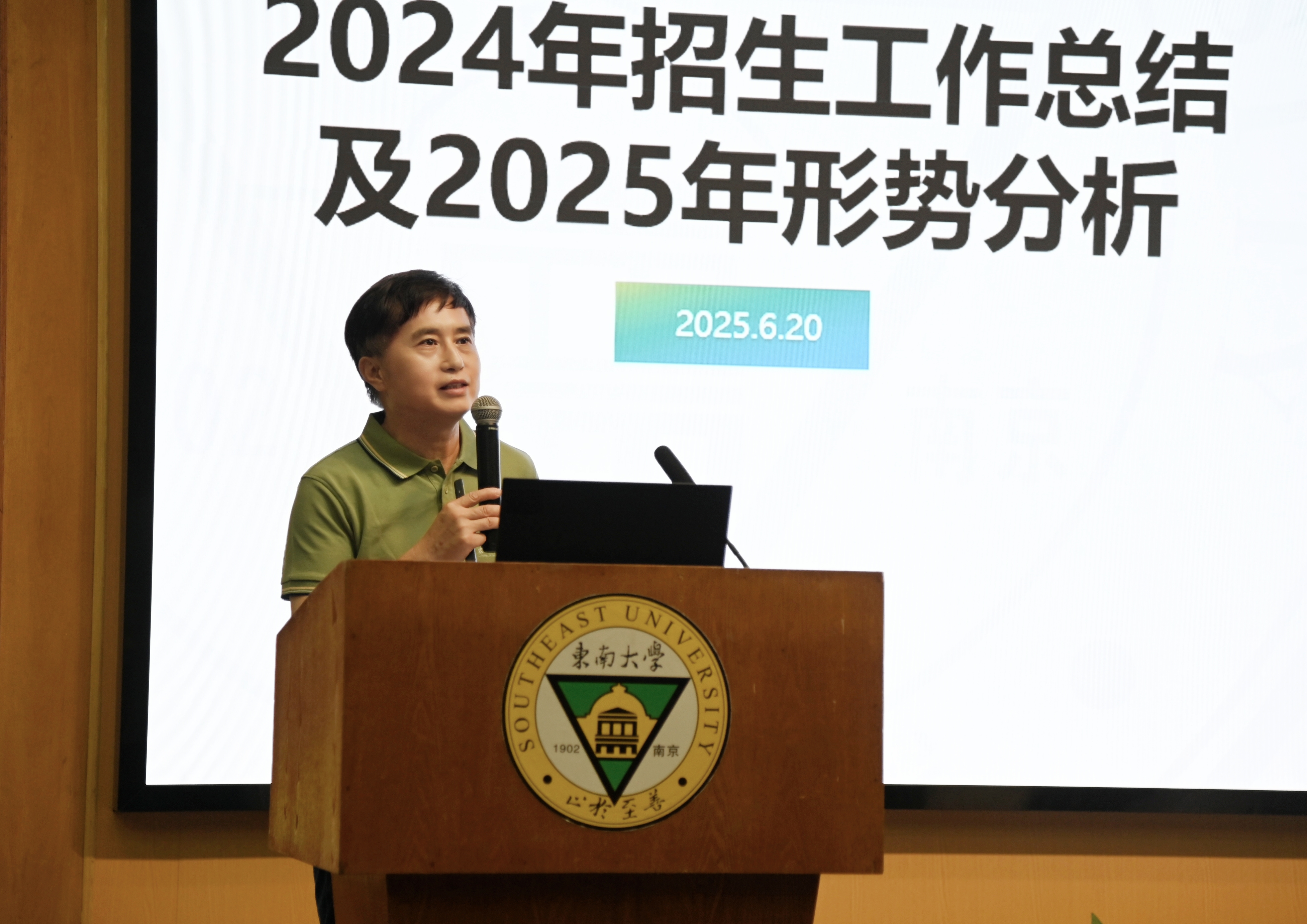 会议分为招生工作总结动员和业务培训两个阶段。在总结动员阶段,学生处处长施杰首先作2024年招生工作总结及形势分析,系统回顾了2024年招生录取情况及工作措施,分析了2025年招生工作形势和招生工作变化。苏州招生组潘天娇老师随后分享了招生宣传的实战经验,从精准对接、服务细节和品牌传播等角度为与会人员提供了宝贵经验。