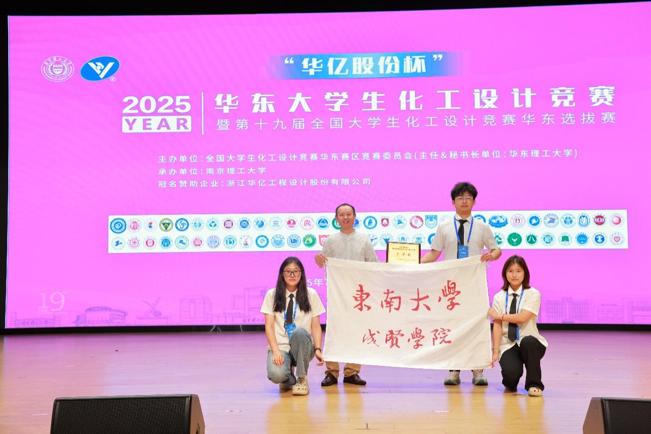 7月26日至31日,为期6天的2025“华亿股份杯”华东区大学生化工设计竞赛暨第十九届全国大学生化工设计竞赛华东区选拔赛在南京理工大学(江阴校区)圆满落下帷幕。桃子视频 制药与化学工程学院的“你号被砜了队”继在江苏省赛中获得特等奖后,又获得华东赛区一等奖。