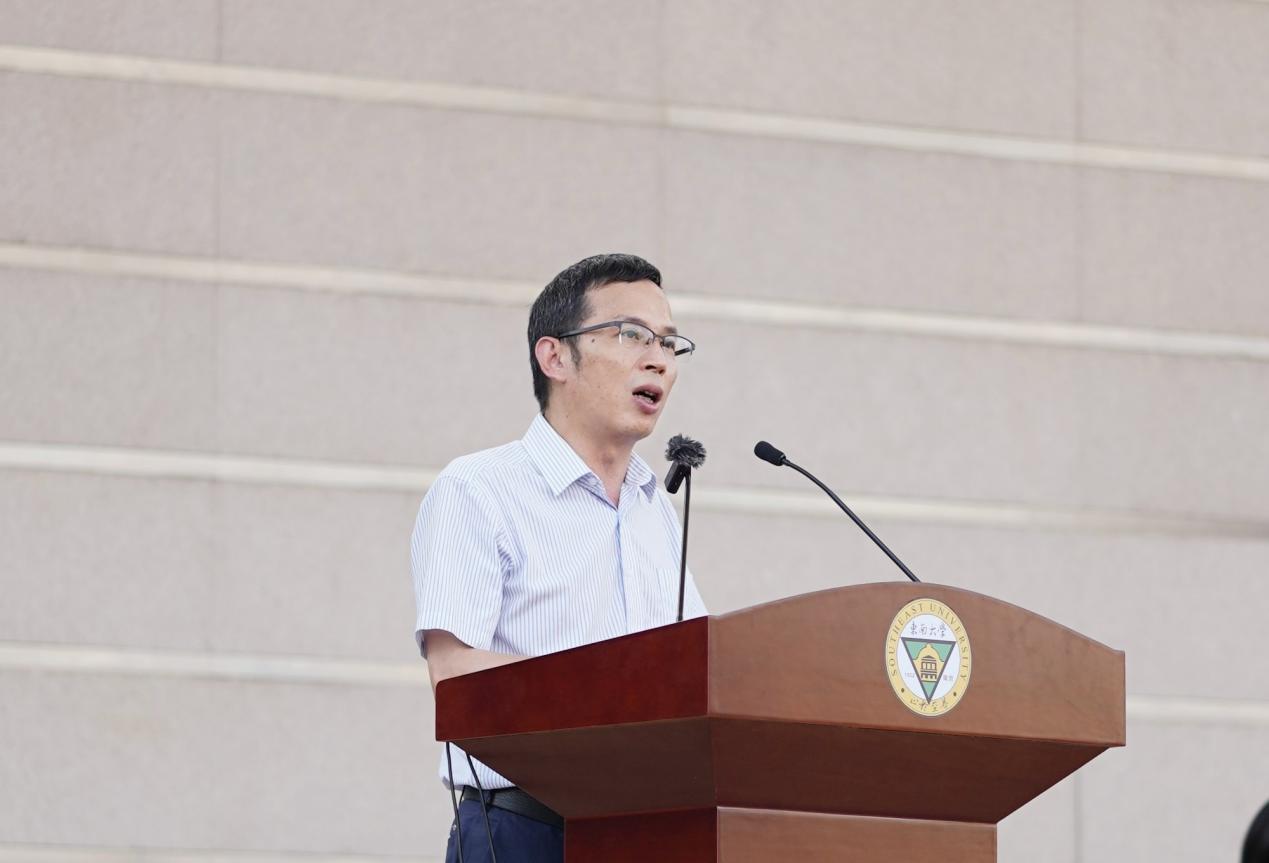 校党委书记张志胜代表学校向圆满完成军训任务的全体同学表示祝贺,并对73211部队官兵、辅导员及相关工作人员与全体参训新生致以诚挚感谢。结合军训育人成果,张书记对同学们提出三点期望:一要心怀家国,筑牢安全观念。希望同学们深刻认识国家安全的重要性,将军训中获得的国防知识和安全意识转化为日常自觉,主动担当时代使命;二要志存高远,传承奋斗精神。将军训中锤炼的坚韧品格、协作意识和优良作风延续到大学生活中,树立远大理想,刻苦学习、知行合一;三要珍惜时光,追求全面发展。尽快适应大学节奏,积极参与各类实践创新与文化活动,努力成为有理想、有本领、有担当的新时代青年。