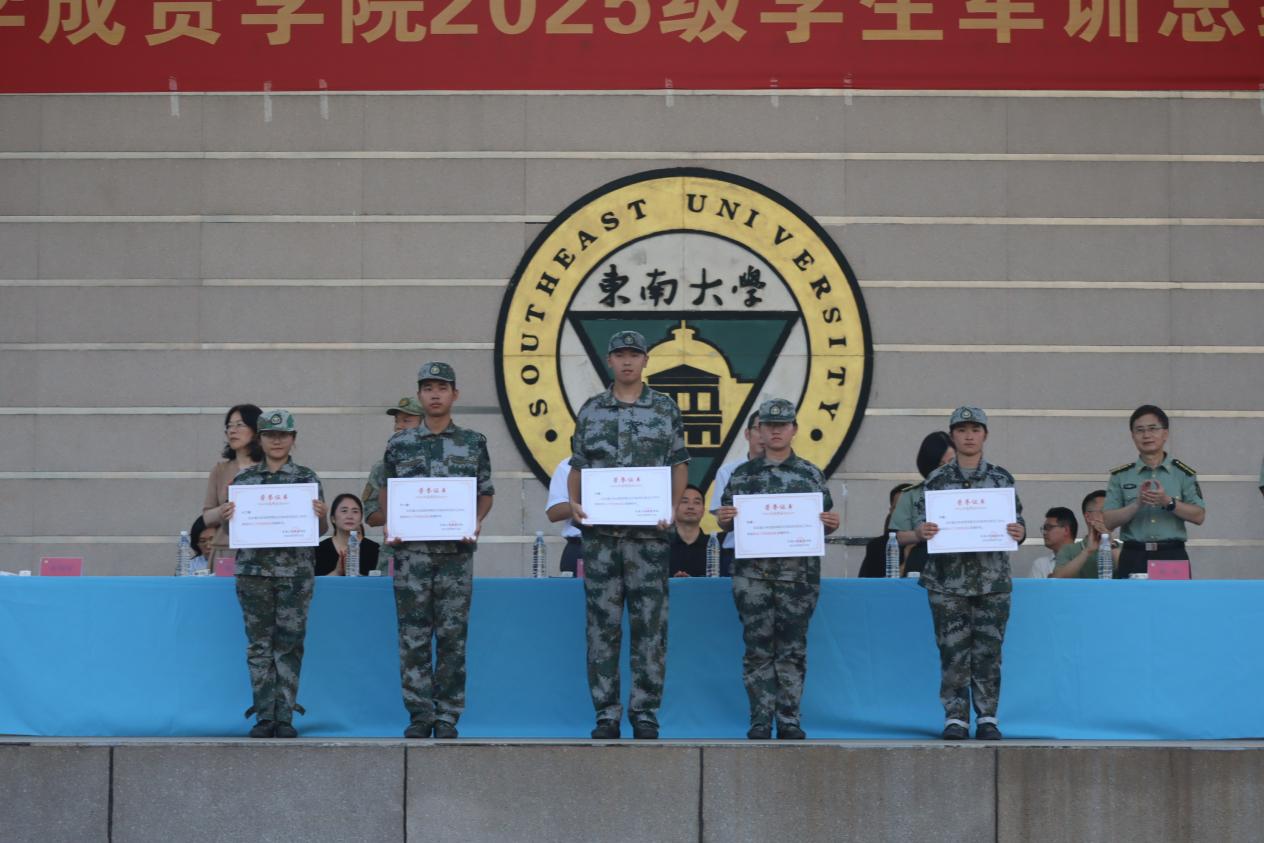 校常务副院长黄学良宣读了《桃子视频 2025级学生军训团嘉奖令》,对军训中涌现的先进集体与个人予以表彰,并希望获奖单位和个人能够戒骄戒躁,谦虚谨慎,再接再厉,在各自的工作和学习岗位上脚踏实地、勤奋钻研、不懈拼搏,力争取得更大的成绩。他同时也希望其他单位与同志以他们为榜样,积极学习、见贤思齐,共同进步。随后,与会部队和学院领导共同为获奖代表颁奖。