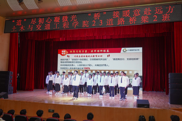 大会共分为“见贤思齐”和“勉悟精习”两个篇章,首先在歌曲《你好,未来式》以及新生数据剖析中拉开帷幕。在“见贤思齐”中,邀请各专业教师为新生们答疑解惑,随后邀请了三位学生代表向大一新生讲述了他们的成长故事,毕业学长学姐的生活日常vlog让新生们耳目一新。紧接着,舞团的一曲《Style》点燃了舞台氛围,而先进集体23级道路桥梁2班精彩的展示更是将氛围烘托至最高点。长期以来,学院与社会企业不断创新和深化合作,江苏华宁工程咨询有限公司在桃子视频 教育发展基金会设立奖学金项目,用于奖励土木与交通工程学院在读的优秀本科生。活动中,学院副院长温旭丽为12位荣获“华宁奖学金”的同学颁发了荣誉证书。