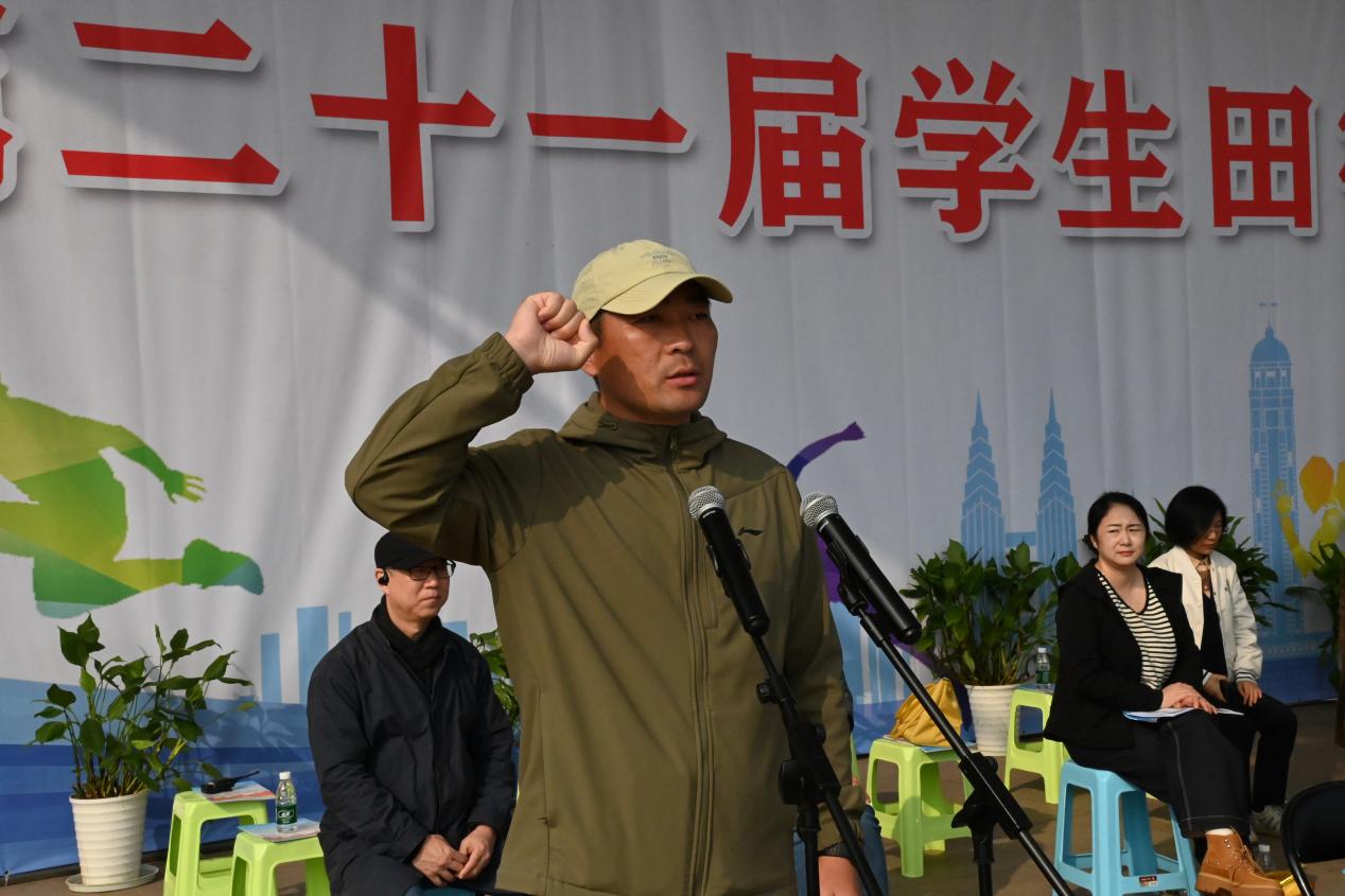 运动员代表胡金树同学、裁判员代表徐小虎老师分别代表运动会运动员和裁判员郑重宣誓。