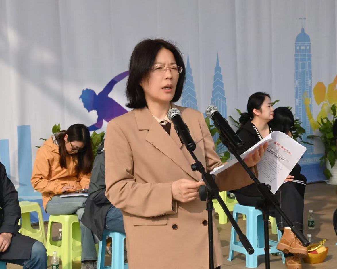 (学院体育教研室主任王青禾宣布运动会开幕)