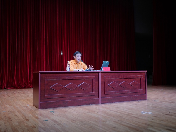 专业分享环节,张伟聚焦民族管弦乐配器技巧与指挥核心,结合其担任音乐总监的苏科民族乐团、常任指挥的湖南省民族乐团合作经历,以《长江》《心潮》等合作作品为实例,拆解传统民乐的当代表达路径——既保留二胡、唢呐等传统乐器的文化底色,又通过现代编曲与演奏形式创新适配当代审美。为让理论更直观,现场穿插两部作品选段赏析:《长江》磅礴勾勒山河,《心潮》灵动抒发情感,让师生在聆听中直观感受民族音乐的文化根脉与情感力量。
