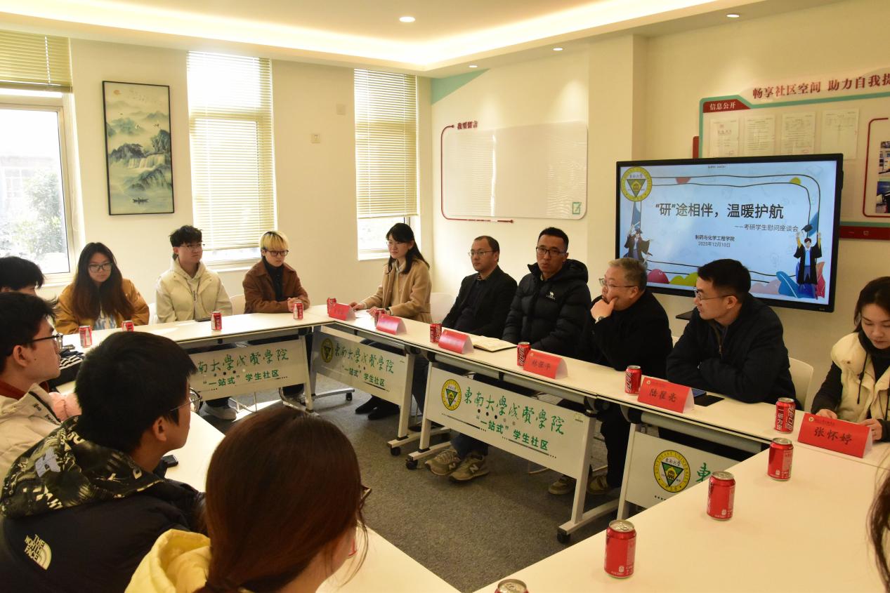为有效缓解考研学子备考压力、坚定冲刺阶段信心,营造互助向上的考氛围,12月10日上午,制药与化学工程学院精心举办“研”途相伴,温暖护航考研学生慰问座谈会。院长林保平、党总支书记周继荣、化工系主任陆瞿亮、制药系主任傅志贤、分团委书记朱传瑶、辅导员张怀婷与2026届考研学生代表齐聚一堂,共话备考心得,共解冲刺困惑。